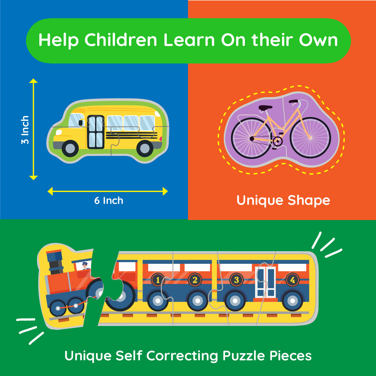 Introducing 'My First Puzzle' - the perfect introduction to the captivating world of puzzles for your little one. This Montessori-inspired toy is designed to foster early cognitive development and problem-solving skills. With 12 carefully graded puzzles, ranging from easy 2-piece puzzles to more challenging 5-piece puzzles, your child can embark on a journey of accomplishment and confidence-building. As they progress through each level, they'll experience a sense of achievement and a growing love for puzzles. 'My First Puzzle' is not just a toy, but a gateway to a lifelong passion for learning and exploration. Crafted with high-quality materials and vibrant colors, this set is sure to captivate your child's imagination and provide hours of engaging playtime. Unlock the joy of puzzles with 'My First Puzzle' and watch your little one's problem-solving abilities blossom.